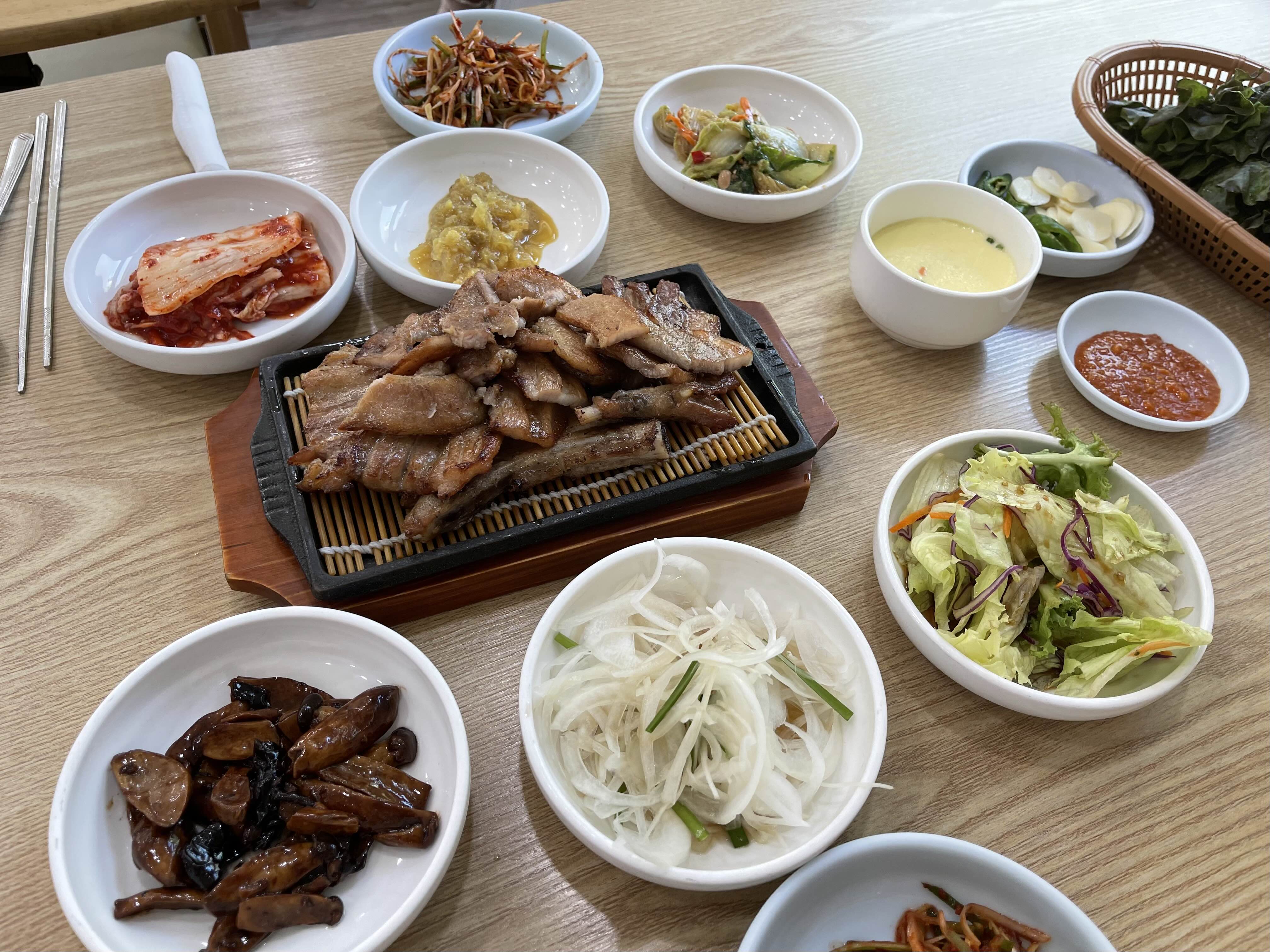 밑반찬이 정갈하고 고기랑 찰떡궁합!