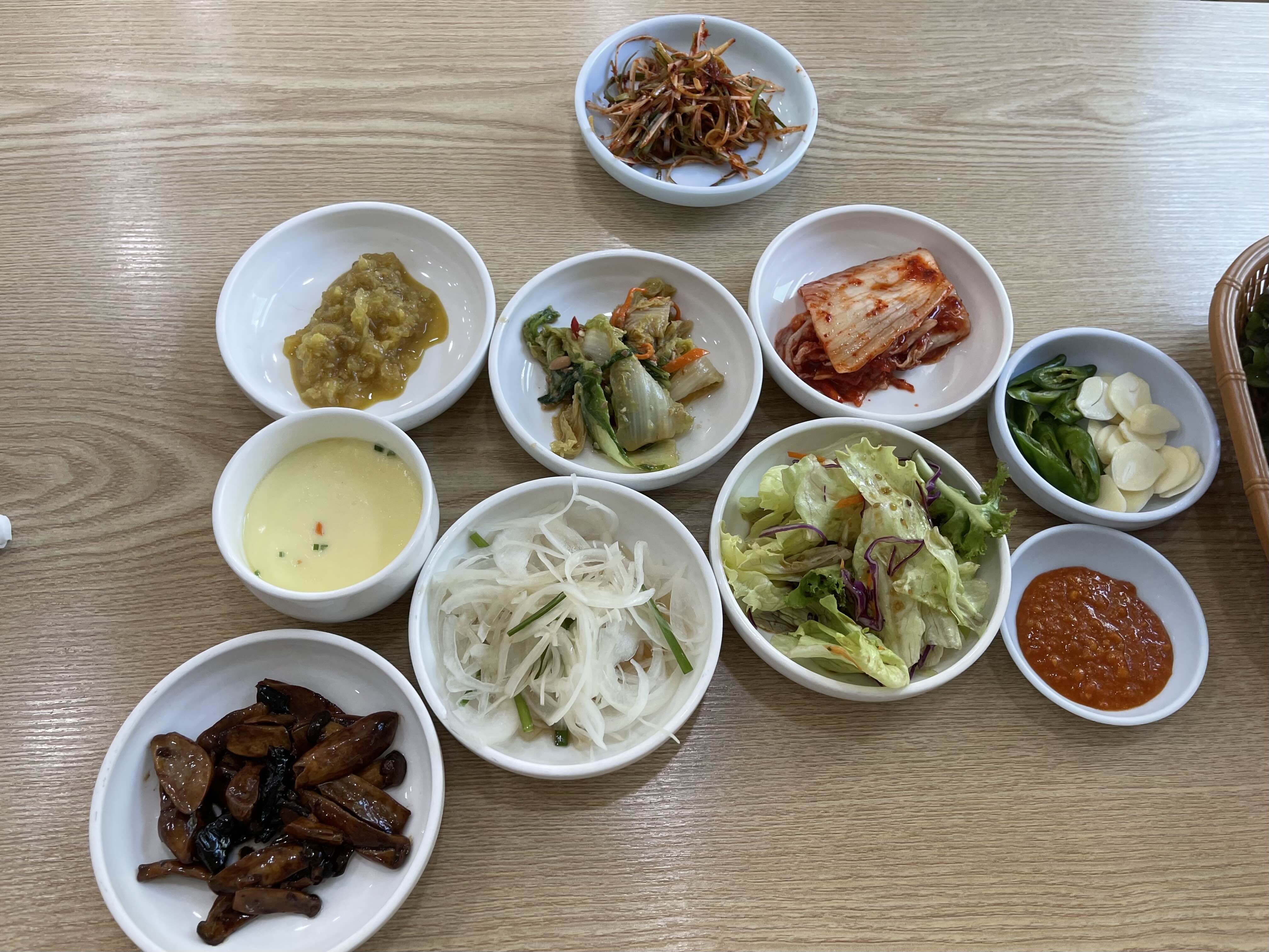 김치, 파무침, 샐러드, 계란찜까지